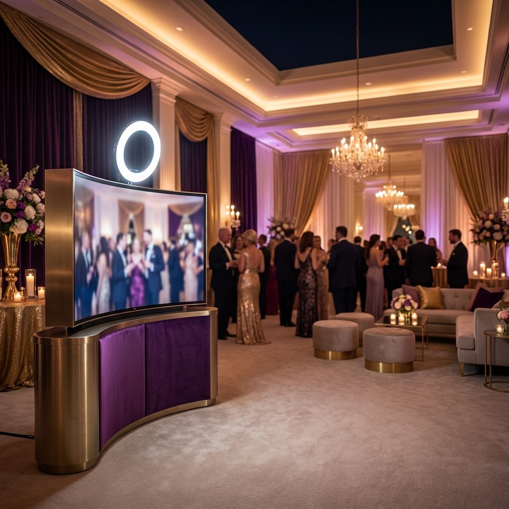 Luxury event venue with sleek photo booth setup